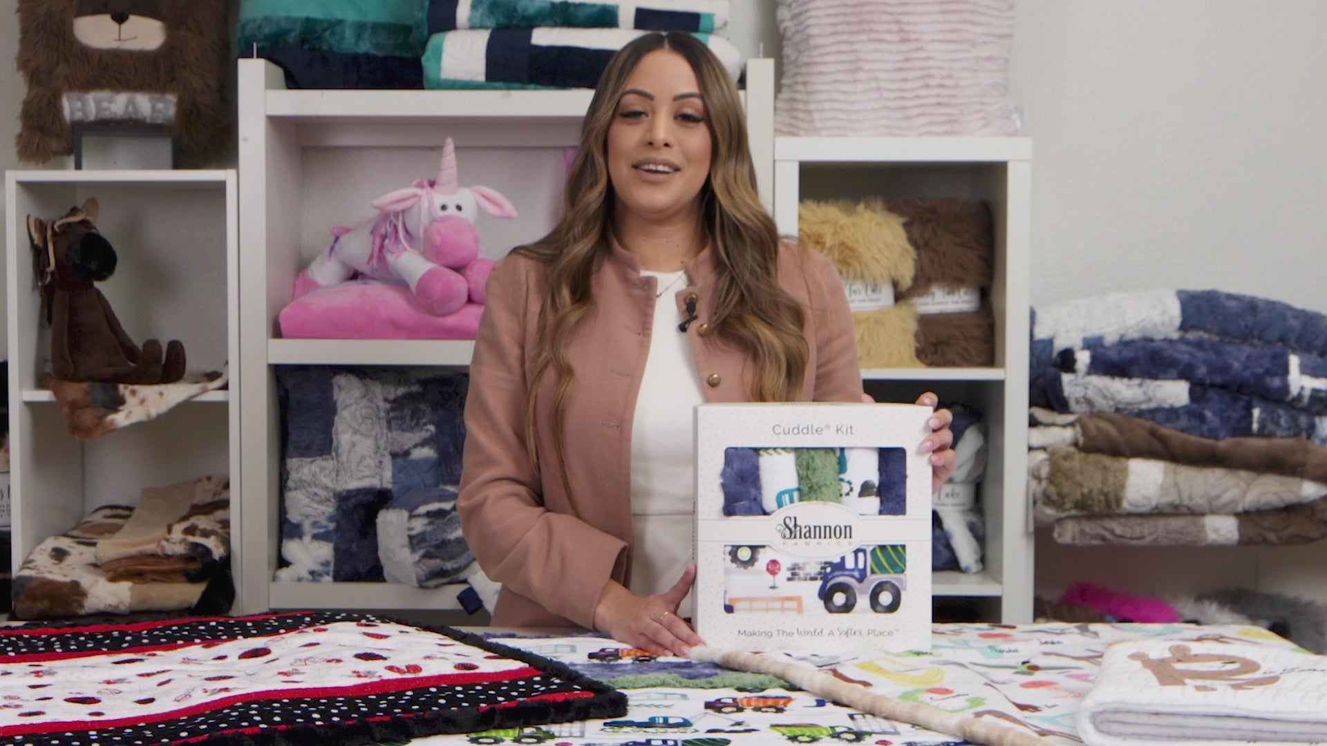 Illustrated in a kid-friendly, almost watercolor style, this animal-themed quilt will have your little one dreaming of an african safari as they bundle up for naptime. Featuring hippos, elephants, zebras, giraffes and more in our included Safari Dreams Digital Cuddle® Blue fabric, it's also a great way to help young kids learn their animals. This Blue variation is a perfect complement for little boys' rooms and includes our Alotta Dots Cuddle® Graphite for the top and backing, Luxe Cuddle® Hide Baby Blue for the top and Luxe Cuddle® Seal Banana for the binding. This Wee Ones Cuddle® kit is approximately 27" by 27" and includes a pattern and fabric strips, backing and binding.