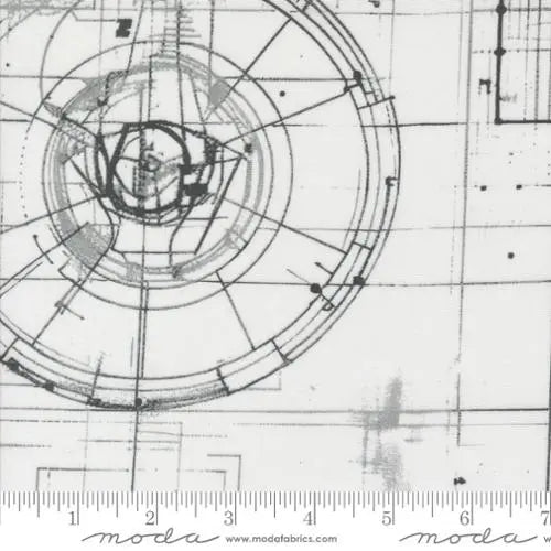 White Modern Backgrounds Blueprint Cotton Wideback Fabric Per Yard
