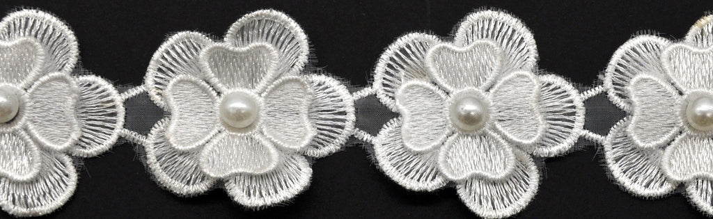 2 Inch Wide White Flower Lace Trim with Pearl in 10 Yard Rolls