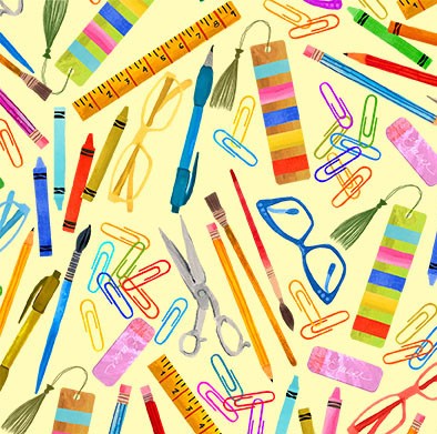 Yellow On My Desk Books are Magic Cotton 44"/45" Fabric Per Yard